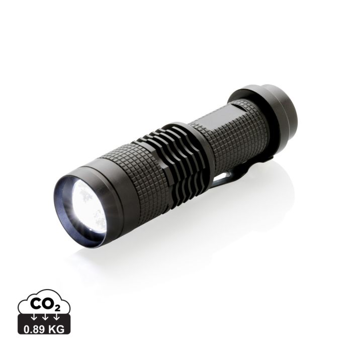 Compact but super bright 3W CREE torch that can easily be taken wherever you go because of its compact size. Includes batteries for direct use. 85 lumen and working time of about 4 hours. Made out of durable aluminium.