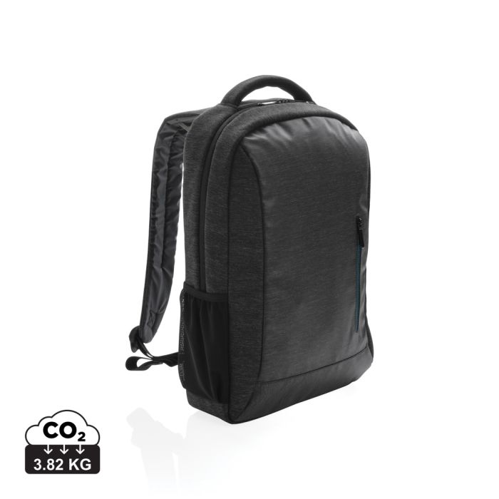 Carry all of your gear for school or travel inside this 900D laptop backpack. It's made from durable fabric and features a sporty, urban inspired design with custom fit straps for added comfort. This backpack includes a fully padded laptop compartment, a large main compartment to hold books or extra layers of clothing and a front zipper pocket for accessories. There is also a trolley strap on the back. Fits laptops up to 15.6”. PVC free.