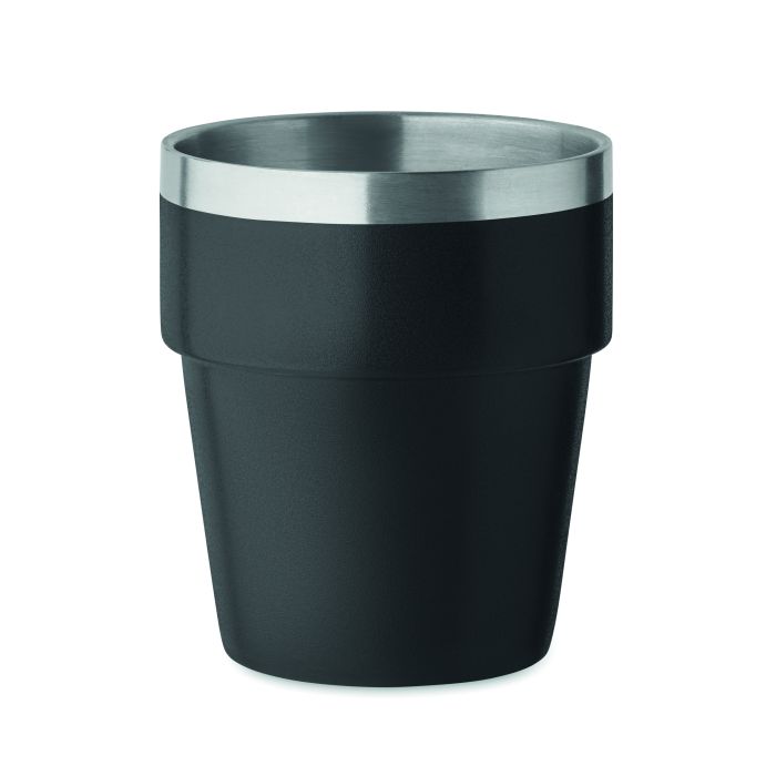 Pahar cu perete dublu din inox reciclat (90% oțel inoxidabil reciclat și 10% oțel inoxidabil). Se poate stivui. Capacitate: 250 ml.