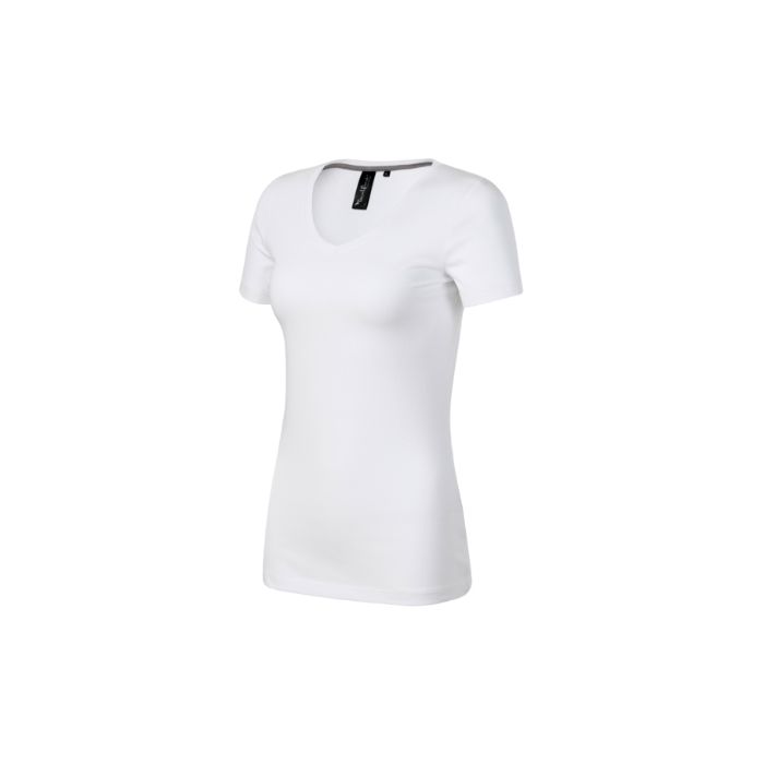 materialul elastic conferă stabilitate formei, croială "slim fit" ce prezintă cusături laterale, guler în formă de V cu decolteu adânc, tivul îngust al gulerului este confecționat din material raiat 1:1, cu adaos de 5 % elastan, interiorul gulerului prezintă bandă de întărire pe spate în culoare contrastantă , la nivelul umerilor este aplicată o cusătură de întărire, mâneci scurte strâmte
