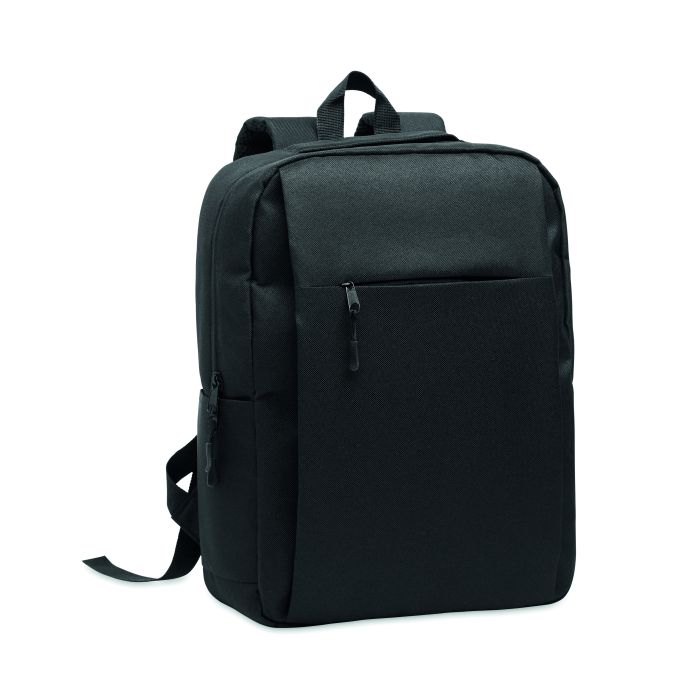 Rucsac 15'' RPET 6300D și căptușeală 210D. Compartiment laptop complet căptușit. Buzunar exterior cu fermoar tabletă 10'', 2 buzunare interioare pixuri. Buzunar frontal cu fermoar. 2 buzunare laterale glisante. Spate și curele de umăr căptușite. Manșon pentru valiză.