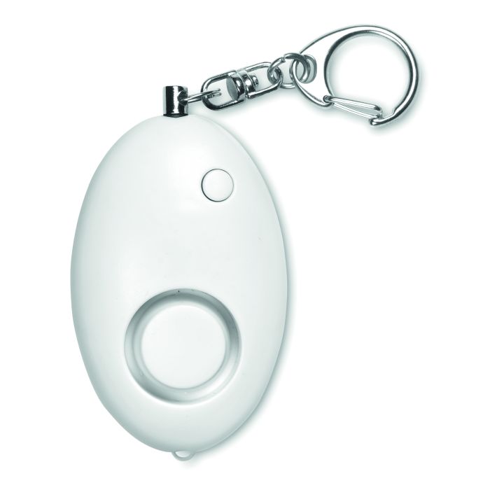 Dispozitiv în carcasă din plastic ABS, cu alarmă personală, care se declanșează prin tragerea acului atașat la breloc. Prevăzut cu 1 LED alb. Include 3 baterii de tip AG13.
