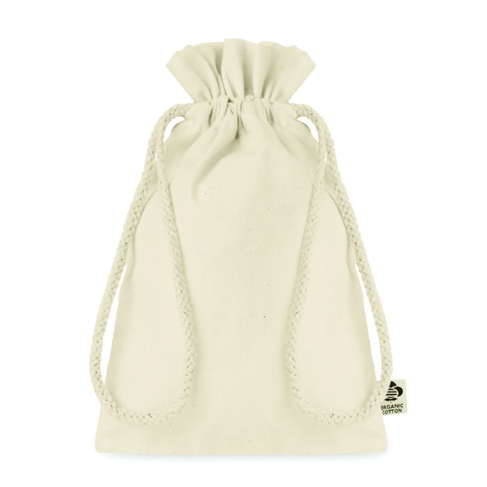 Pungă mică pentru cadouri din bumbac organic. Dimensiune de aproximativ 14x22 cm. 105 gr/m².