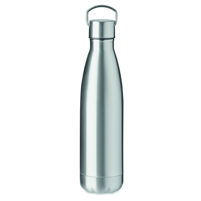 Sticlă din oțel inoxidabil cu perete dublu, termoizolantă, capac cu mâner. Capacitate 500 ml. Fără scurgeri.