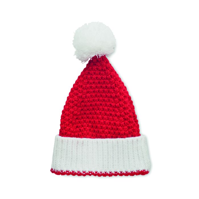 Căciulă tricotată de Crăciun cu manșetă și moț din acrilic moale și extensibil.