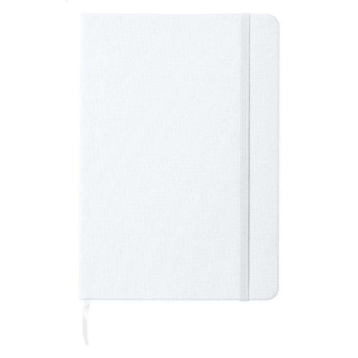 Agendă cu copertă din RPET poliester, cu semn de carte și bandă de cauciuc. Cu 80 de pagini cu liniatură dictando. Dimensiune A5.