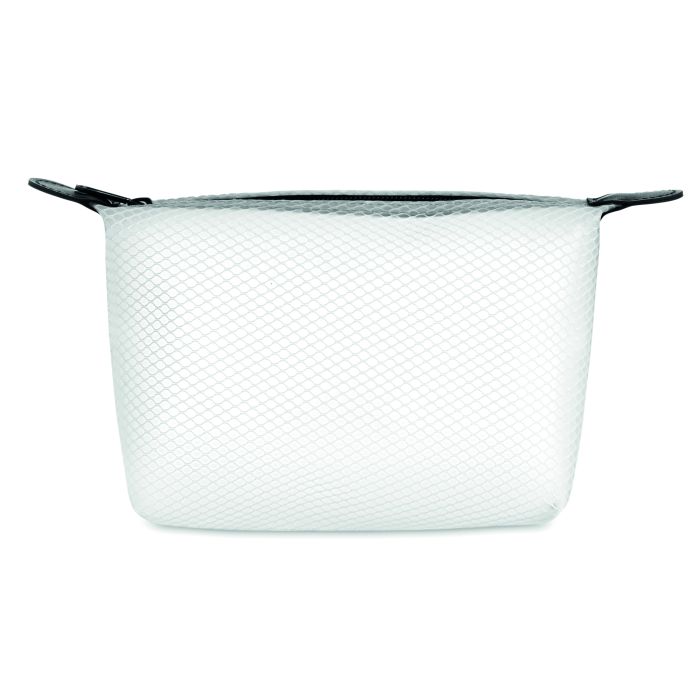 Geantă toaletă din plasă transparentă EVA cu fermoar negru.