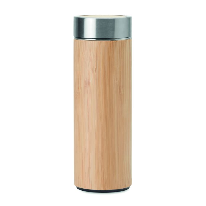 Termos din inox cu perete dublu, înveliș din bambus, 400 ml și infuzor de ceai. Bambusul este un produs natural, în consecință pot apărea diferențe de culoare, dimensiune sau desen. FSC®-certified | FSC 100%, N5.7, FSC-C213206