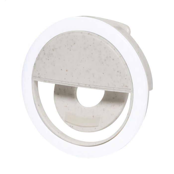Inel pentru selfie, din plastic ecologic din paie de grâu, cu 36 LED-uri, pentru telefoane mobile. Cu 3 niveluri de luminozitate reglabile și baterie reîncărcabilă încorporată. Inclusiv cablu de încărcare USB.