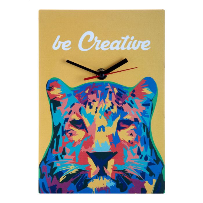 Ceas de perete dreptunghi cu design unic, din placaj HDF. Funcţionează cu 1 baterie AA. Se livrează fără baterii. MOQ: 50 buc.