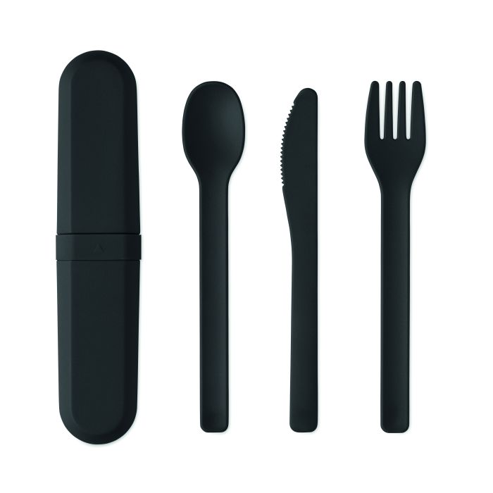 Set tacâmuri reutilizabile cu husă din porumb PLA. Fiecare set include o furculiță, un cuțit , o lingură și o husă practică pentru ustensile portabile.