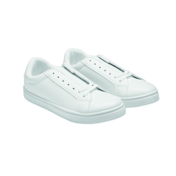 Teneși ușori din PU cu talpă exterioară din cauciuc și șireturi din poliester. Mărime: 47. Prezentați în cutie de pantofi albă. Teneșii sunt furnizați doar cu șireturi înfiletate în primele 2 ochiuri.