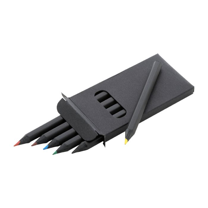 Set de 6 buc. creioane colorate, din lemn negru, în cutie de hârtie neagră.