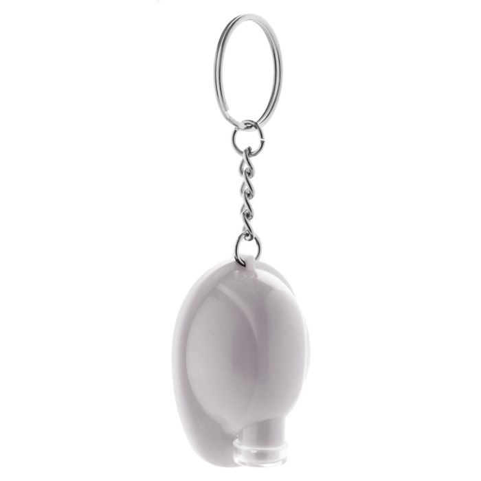 Breloc în formă de cască de siguranță, din plastic, cu lumină LED. Cu baterie tip ceas.