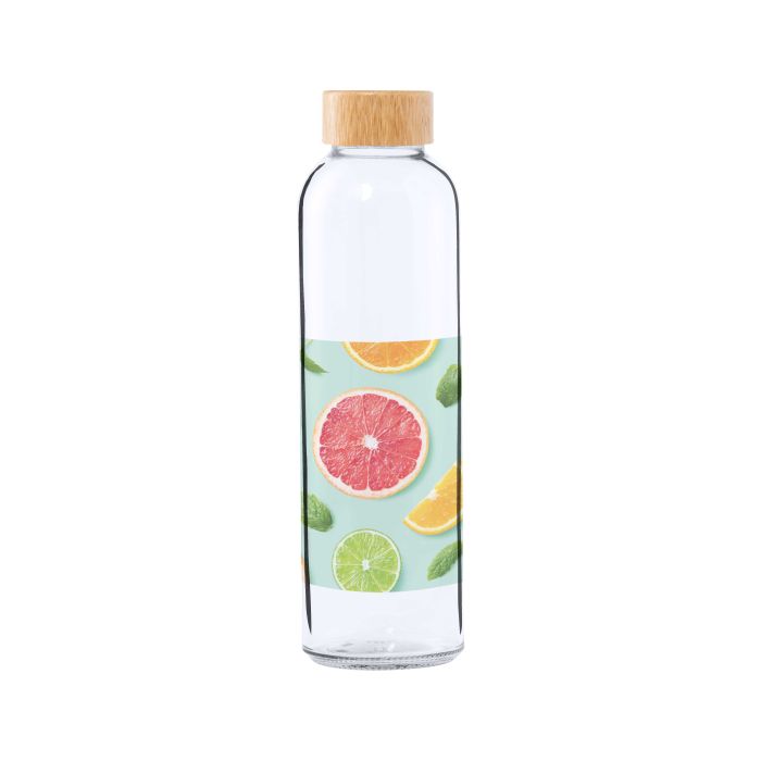 Sticlă din sticlă, cu capac din bambus, 500 ml. Nu este potrivită pentru băuturi carbogazoase.