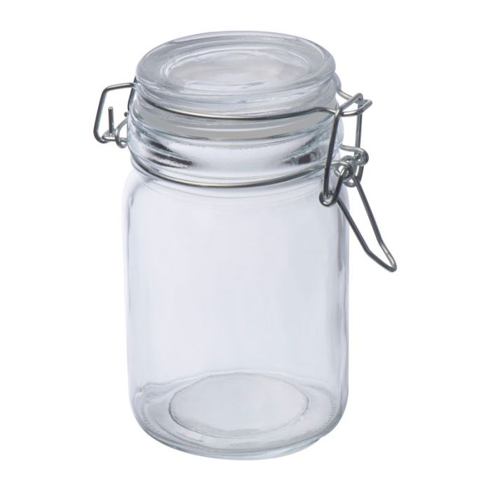 Borcan de depozitare din sticlă borosilicată (200ml), cu capac prevăzut cu cataramă cu închidere etanşă. Perfect pentru depozitare.