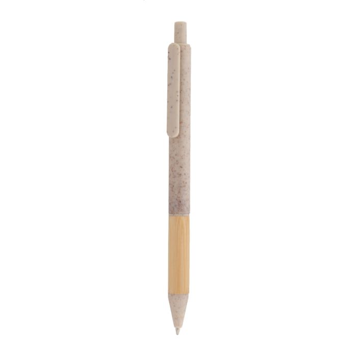 Pix ecologic, din plastic din paie de grâu, cu corp din bambus și părți colorate. Cu mină albastră.