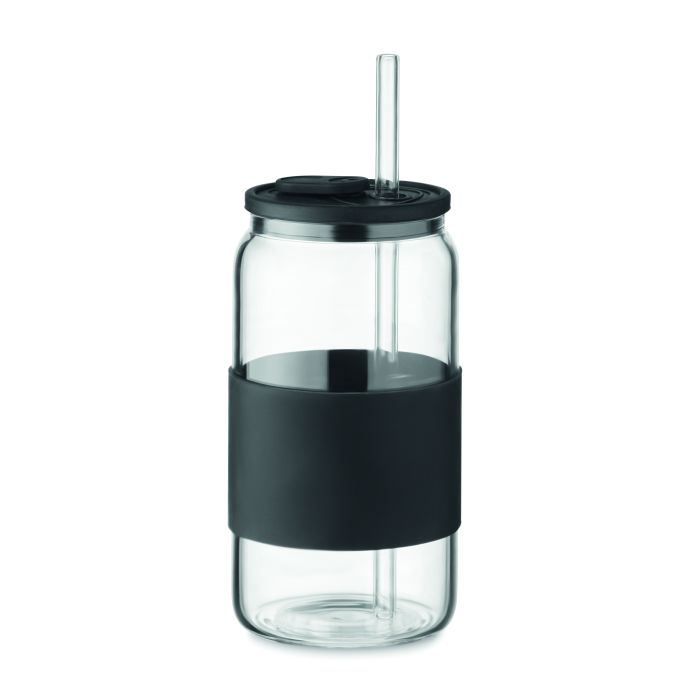 Pahar înalt din sticlă borosilicată cu capac și mâner din silicon. Include pai din sticlă borosilicată. Capacitate : 550 ml.