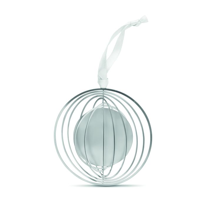 Ornament decorativ în formă rotundă, din inox, cu panglică, în plic cadou. Ușor de pliat într-un cerc frumos.