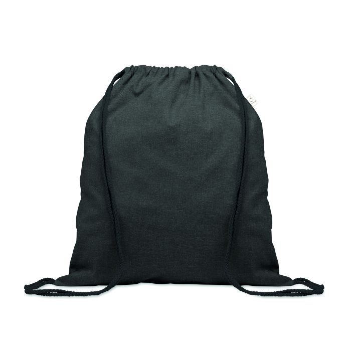 Pungă cu cordon din bumbac reciclat preconsumator (70%) și RPET (30%). 140 gr/m². Acest articol se poate micsora după imprimare.