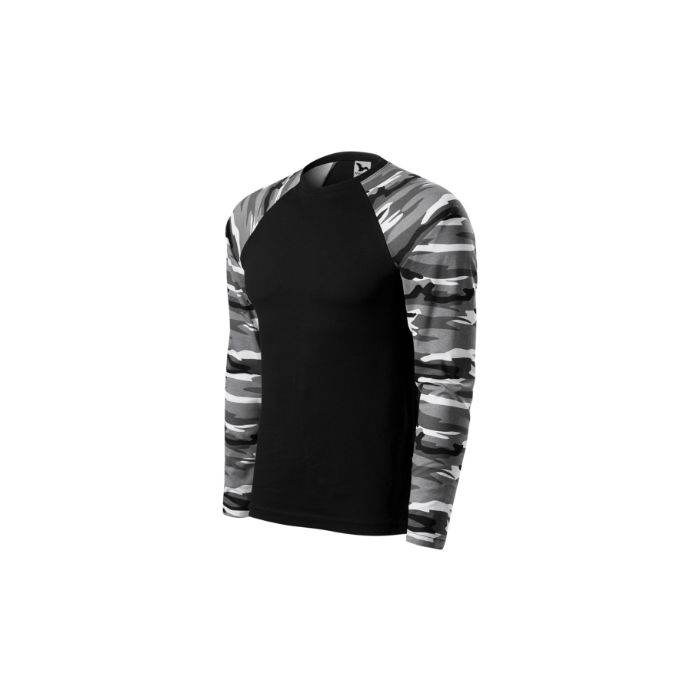 cusături laterale, tivul îngust al gulerului este confecționat din material raiat 1:1, cu adaos de 5 % elastan, interiorul gulerului prezintă bandă de întărire pe spate de culoare 01, mâneci lungi de tip raglan în culoare de camuflaj