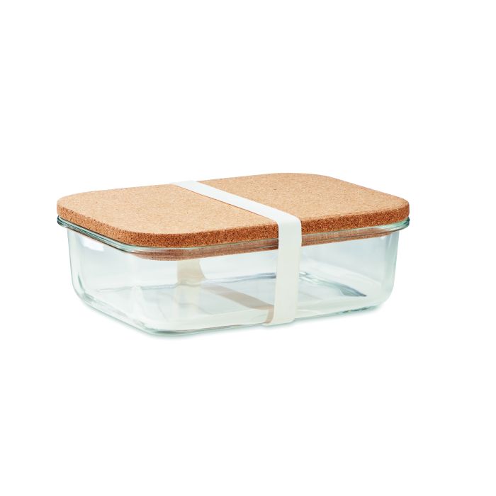 Cutie de prânz din sticlă borosilicată înaltă, cu capac din plută și bandă de silicon. Capacitate: 830 ml.