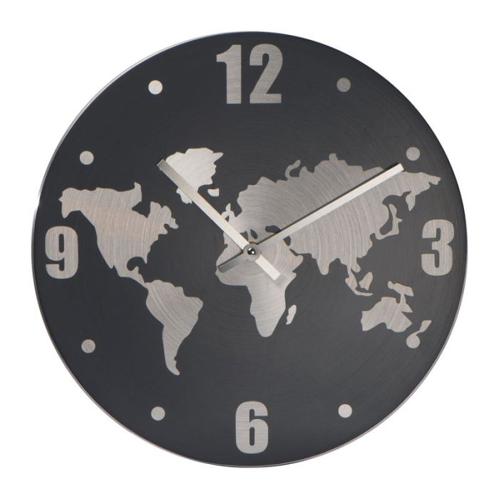 Ceas de perete din aluminiu, cu harta lumii în fundal. Acest ceas vă va atrage atenţia în fiecare încăpere.