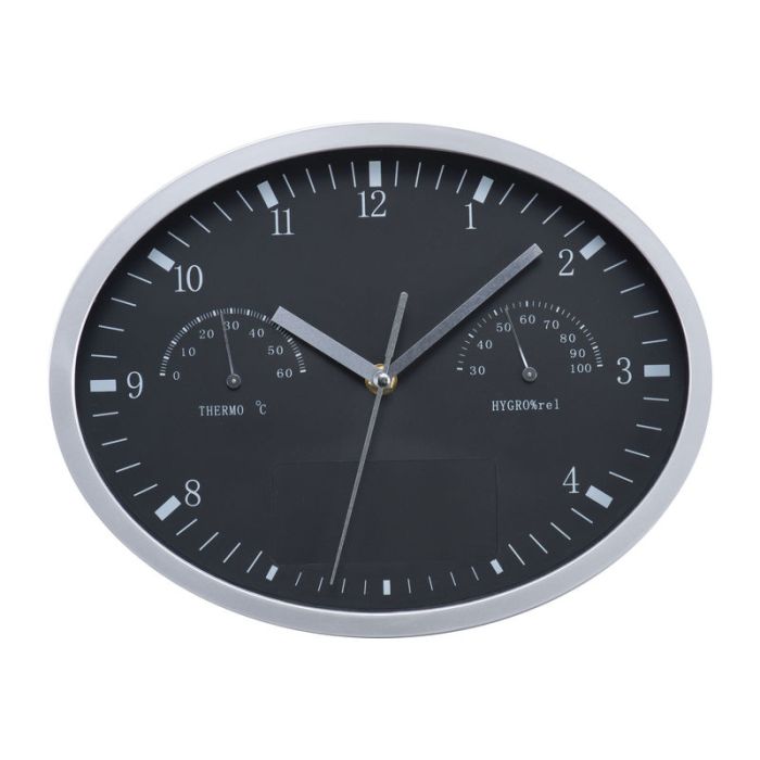 Ceas interesant de perete cu hygrometru şi termometru, cu funcţia click-sistem pentru personalizare rapidă şi fără probleme.