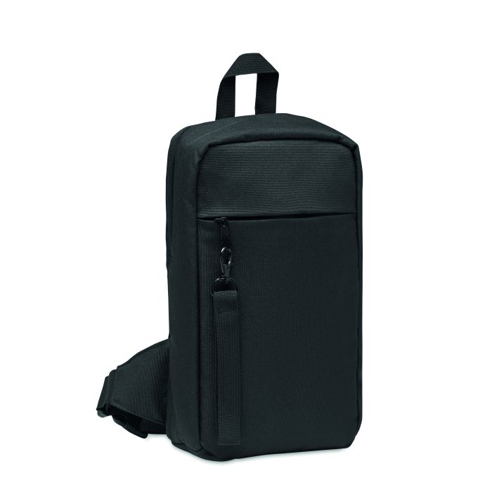 Geantă cross body din poliester 600D RPET. Compartiment principal căptușit cu buzunar din plasă RPET și buzunar frontal cu fermoar. Curea reglabilă și mâner separat.