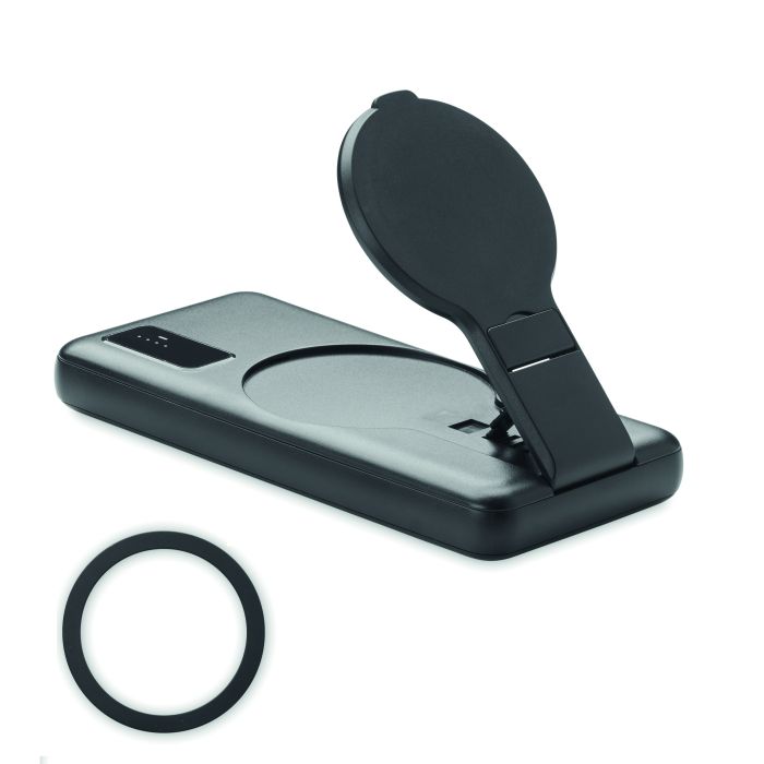 Încărcător wireless magnetic (15 W) și power bank (10000 mAh) din ABS și funcționalitate de suport magnetic pentru telefon. Intrare: micro B, type-C. Ieșire 2x USB-A In/Output: Tip C. Ieșire: DC 9V/1,66A (15W), ideal pentru încărcare rapidă. Inc