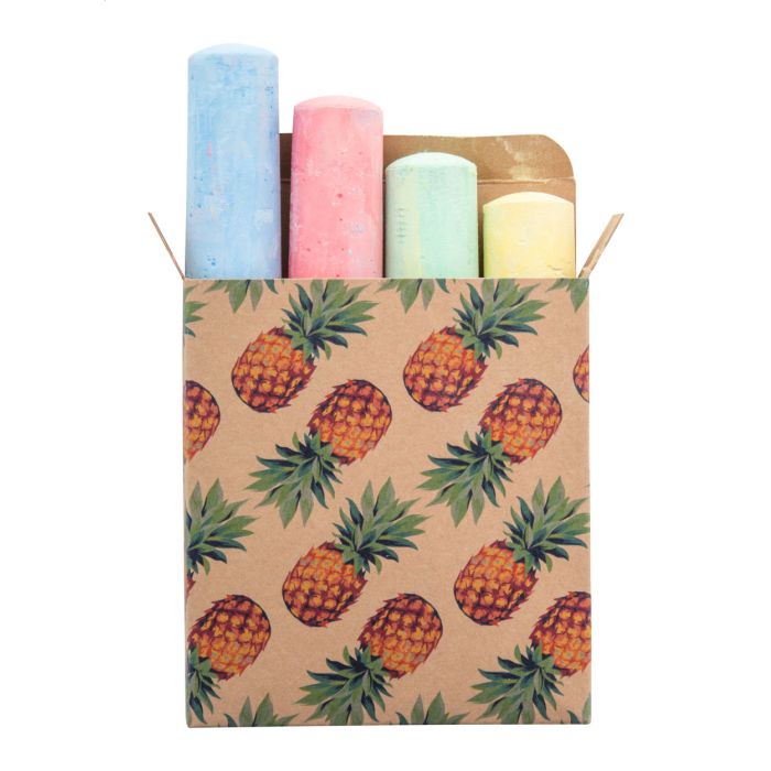 Set de 4 bucăți de cretă colorată, în cutie de hârtie kraft imprimată color. Pretul include imprimarea digitala. MOQ: 100 buc.