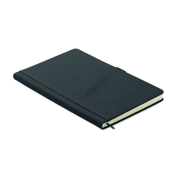 Caiet A5 cu copertă tare din PU cu buzunar pentru telefon în față. Legat în carcasă. 160 de pagini liniate din hârtie reciclată (80 de coli). Semn de carte cu panglică asortată. FSC®-certified | FSC MIX CREDIT, P7.1, FSC-C213206
