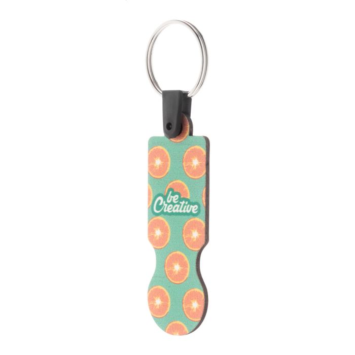 Breloc cu moneda de cărucior de cumpărături, din placaj, imprimat color. Pretul include imprimarea UV LED pe o parte. MOQ: 200 buc.