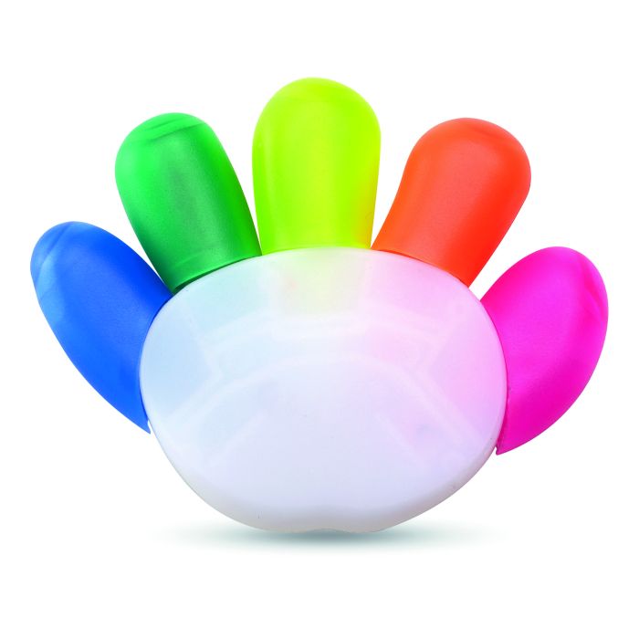 Evidențiator 5 culori în formă de mână. Suprafață mare de personalizare.