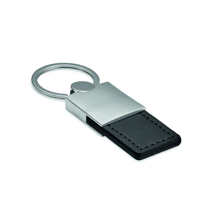 Breloc cu capăt metalic lucios şi bandă din înlocuitor PU.