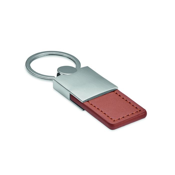 Breloc cu capăt metalic lucios şi bandă din înlocuitor PU.