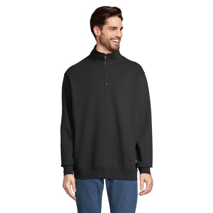 SOL'S CONRAD, Hanorac cu 1/4 fermoar cu guler înalt 80% Bumbac - 20% Poliester reciclat certificat Grs mâneci cu inserție, tăiate și cusute, manșete și partea inferioară cu nervuri 1X1, 1/4 fermoar cu guler înalt, fermoar din plastic injectat în ton cu ton cu ton cu fermoar metalic, semilună din Jersey și bandă de gât în interiorul gulerului (1) Grey Melange : 73% Bumbac / 20% Poliester reciclat / 7% Viscoză