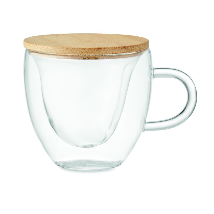 Cană din sticlă borosilicată cu perete dublu, în formă de inimă și capac din bambus. Capacitate: 180 ml. Bambusul este un produs natural, în consecință pot apărea diferențe de culoare, dimensiune sau desen. Fără scurgere.