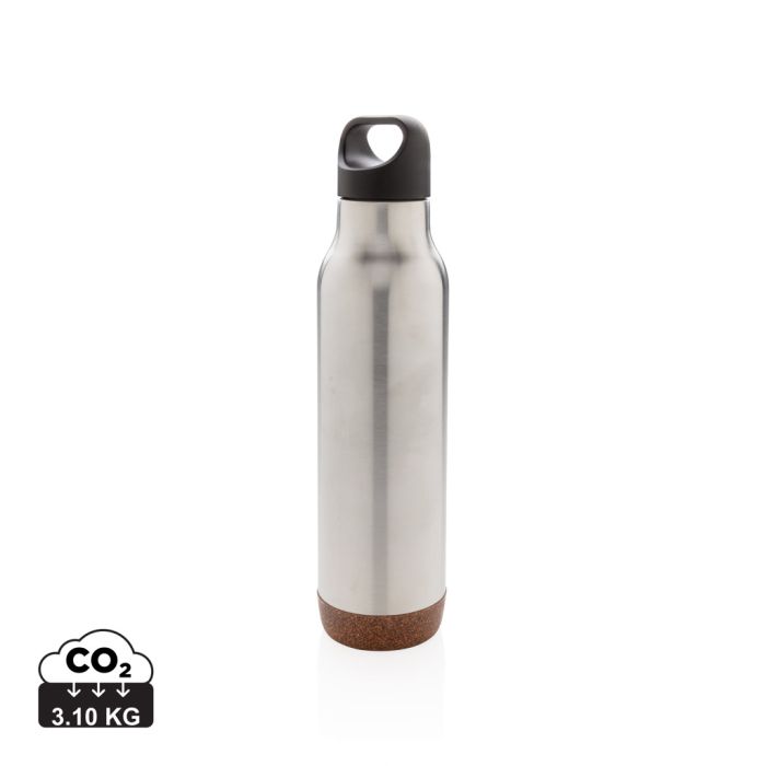 Vacuum insulated leak proof flask with durable 304 SS inside and 201 outside. Unique cork detail on the bottom. Keeps your drinks hot for up to 5h and cold up to 15h. Content: 600ml.