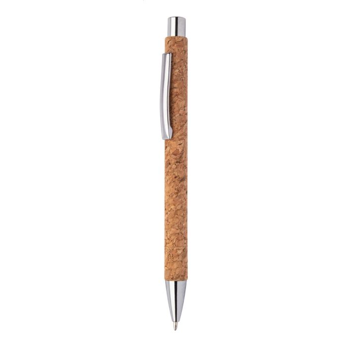 Pix din hârtie reciclată, acoperit cu plută naturală, cu părți metalice. Cu mină albastră.