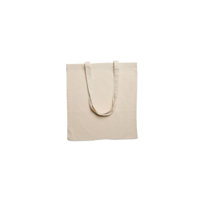 Sacoșă de cumpărături din bumbac 140 gr/m² cu mânere lungi. Acest produs este certificat OEKO-TEX® STANDARD 100.