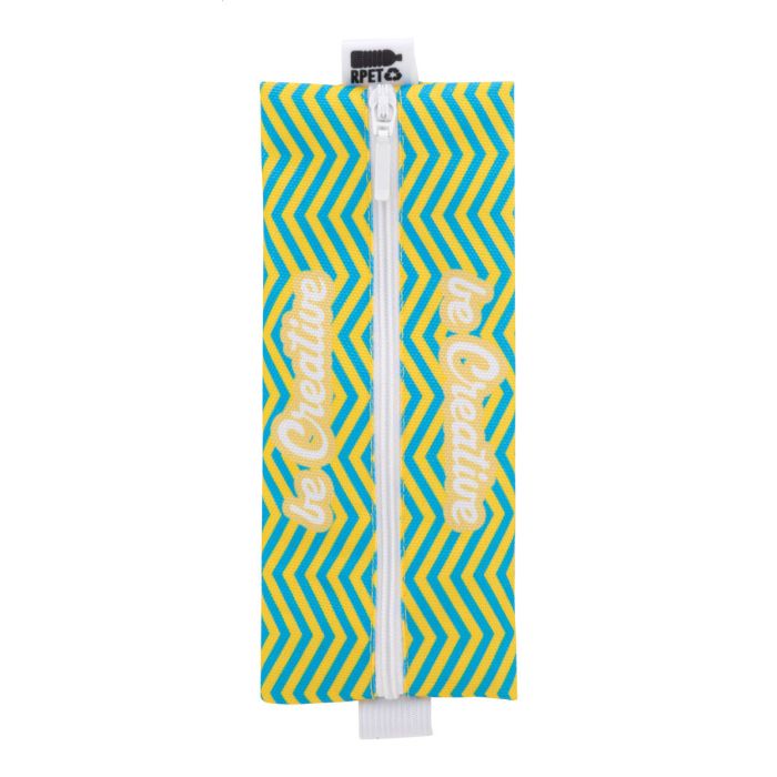 Penar cu fermoar, realizat la comandă, din poliester 600D RPET, cu bandă de cauciuc pentru atașarea la o husă de notebook. Cu grafică imprimată prin sublimare și etichetă RPET distinctă. MOQ: 50 buc.