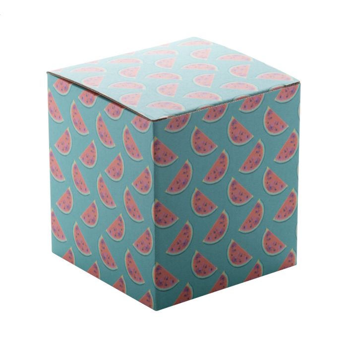 Cutie personalizată din carton ondulat, imprimare full colour. Cantitate minimă de comandă: 50 buc. Cutiile personalizate comandate fără produsul potrivit, se livrează pliate (necesită asamblare).