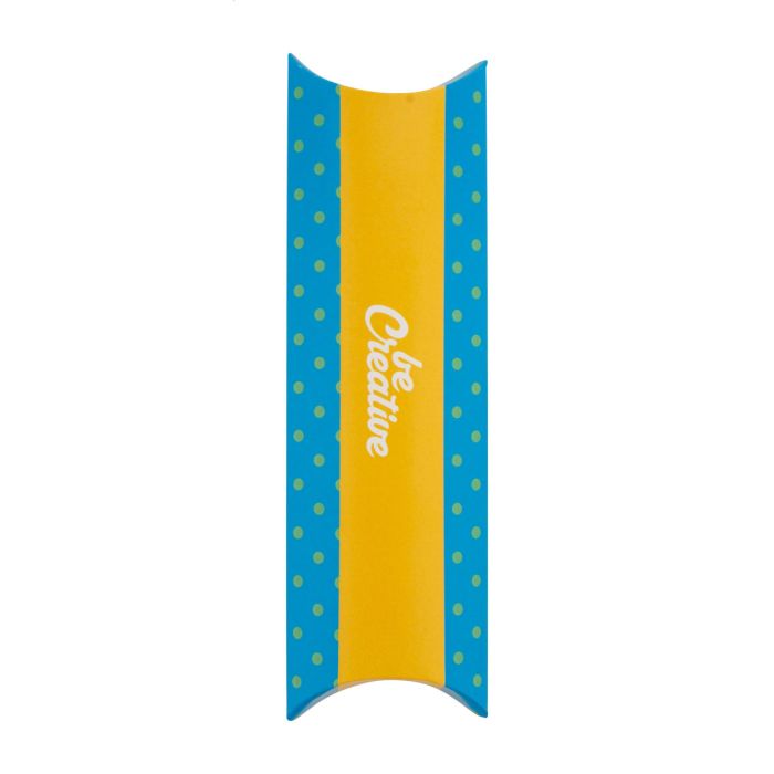 Cutie pentru pixuri, tip pernă, din carton, imprimată la comandă. Livrat ambalat plat. MOQ: 50 buc.