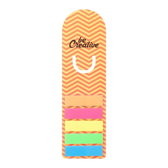 Semn de carte personalizat, din hârtie cu macatoare de pagină. Include 100 de marcatoare de pagină din folie de plastic în 5 culori asortate (44x12 mm). Prețul include imprimarea color pe față. MOQ: 100 buc.