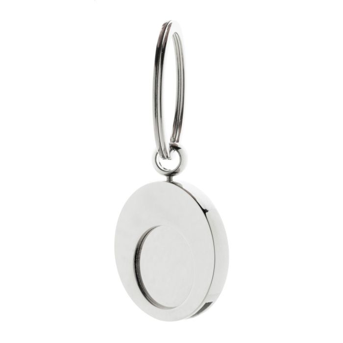 Breloc metalic, de formă rotundă, cu monedă cărucior pentru cumpărături. În cutie de hârtie kraft.