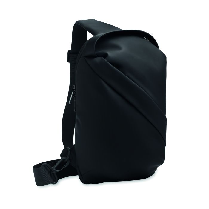 Geantă cross chest din PU moale cu spate căptușit RPET 210D. Un compartiment principal mare cu buzunar frontal și fermoar.