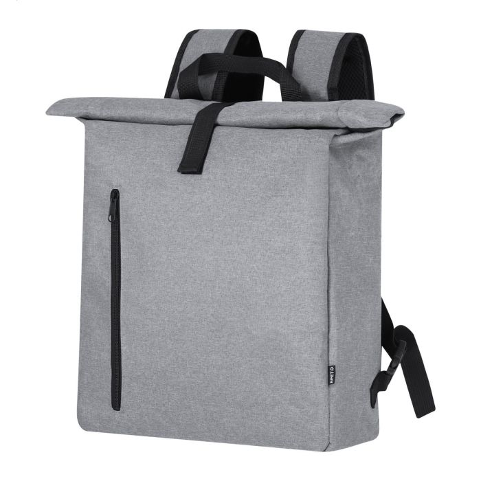 Rucsac pentru bicicletă, din poliester 600D RPET, cu buzunar frontal cu fermoar și bretele de umăr căptușite detașabile. Cu cleme ascunse de montare pe cadru.