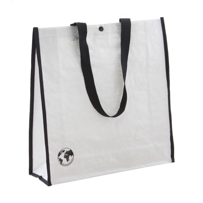 Geantă de cumpărături, biodegradabilă, cu închidere prin capsă. PP țesut 120 g/m².