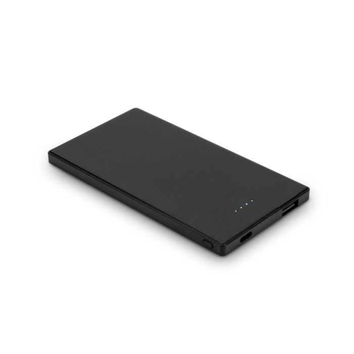 Power bank subțire cu indicator LED al nivelului de încărcare. Designul său elegant și rezistent este soluția ideală pentru călătoriile de agrement sau de afaceri.